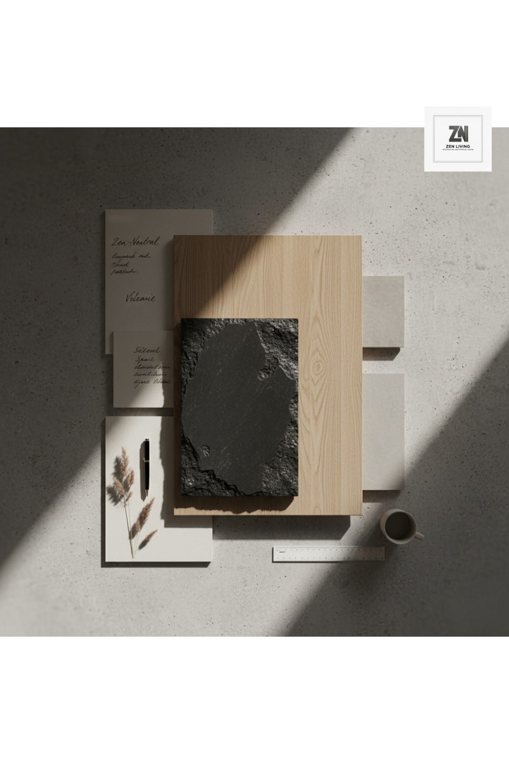 • Zen-Neutral (Materiality): The intentional use of raw, elemental materials—like volcanic basalt, stone, and fine-grain oak—to create a neutral palette that allows the mind to reset.